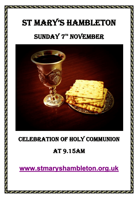 Notices Holy Communion – 7th November 2021 at 9:15 am November 5, 2021 stmaryshambleton A Service of Holy Communion to be led by the Revd Canon John Weetman