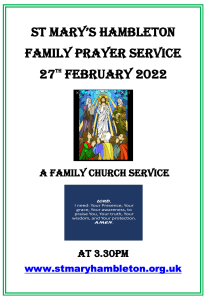 Notices Family Prayer Service – 27th February 2022 at 3:30pm January 31, 2022 stmaryshambleton A Family Prayer Service led by Rev Canon John Weetman