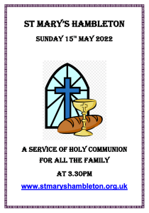 Notices Family Communion – 15th May 2022 at 3:30pm May 3, 2022 stmaryshambleton A Service led by the Revd Canon John Weetman