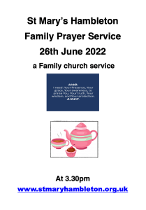 Notices Family Prayer Service – 26th June 2022 at 3:30pm May 28, 2022 stmaryshambleton A short Family Prayer Service
