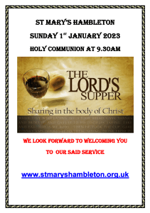 Notices Holy Communion – 1st January 2023 at 9:30 am November 28, 2022 stmaryshambleton A Book of Common Prayer Service of Holy Communion to be led by the Revd Dr Julie Watson