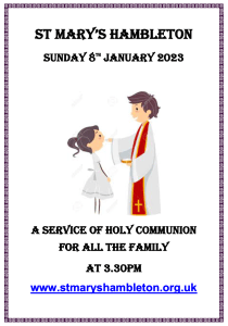 Notices Family Communion – 8th January 2023 at 3:30pm December 29, 2022 stmaryshambleton The Service will be led by the Revd Canon John Weetman