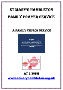Notices Family Prayer Service – 26th March 2023 at 3:30pm February 24, 2023 stmaryshambleton A short Family Prayer Service led by Revd Canon John Weetman Coffee and tea will be available after this service