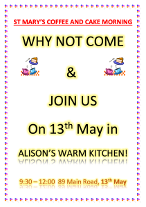 We are very grateful to Alison Garner for her kind and generous offer to host our May coffee morning in her warm kitchen at 89 Main Road, Hambleton