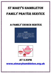 Notices Family Prayer Service – 25th June 2023 at 3:30pm May 28, 2023 stmaryshambleton A short Family Prayer Service led by Rev Canon John Weetman Coffee and tea will be available after this service