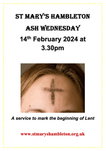 Ash Wednesday – Service 14th February 2023 at 3.30pm